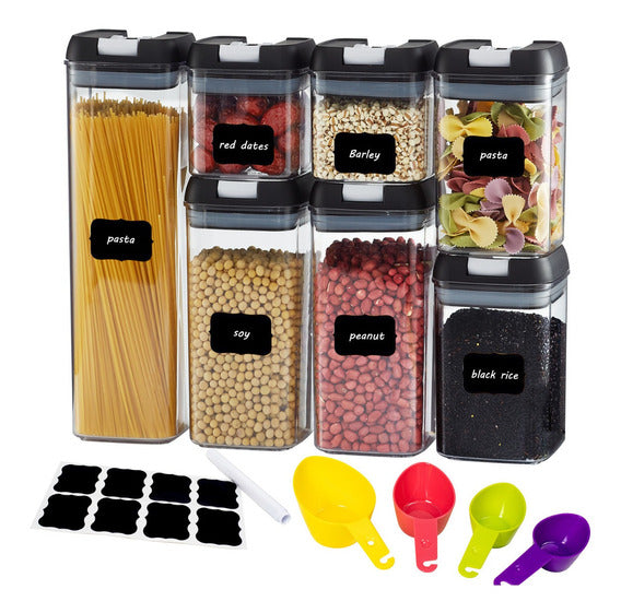 ✅ Usos Infinitos: No solo son ideales para almacenar alimentos secos como harina, azúcar, arroz, galletas, cereales, y más, sino que también son perfectos para líquidos como agua, jugo y sopa. Versatilidad al máximo.
