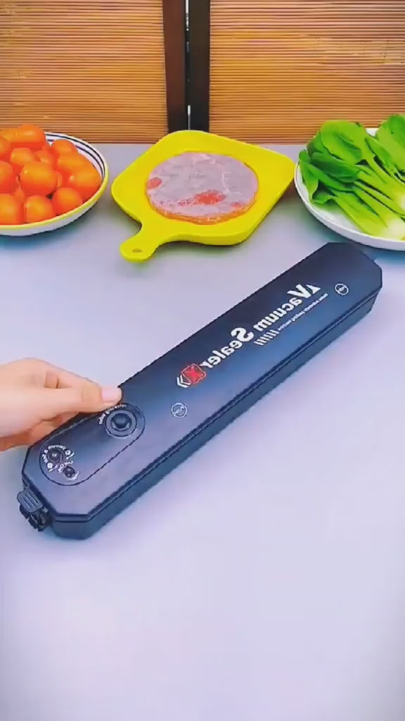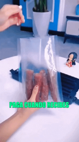 Este sellador 🔒al vacío es muy fácil de usar. Solo tienes que colocar el alimento🥩 en la bolsa, colocar la bolsa en el sellador y presionar el botón de sellado. El sellador al vacío elimina el aire de la bolsa, lo que evita la oxidación y el crecimiento de bacterias, manteniendo tus alimentos frescos🍓 durante más tiempo.